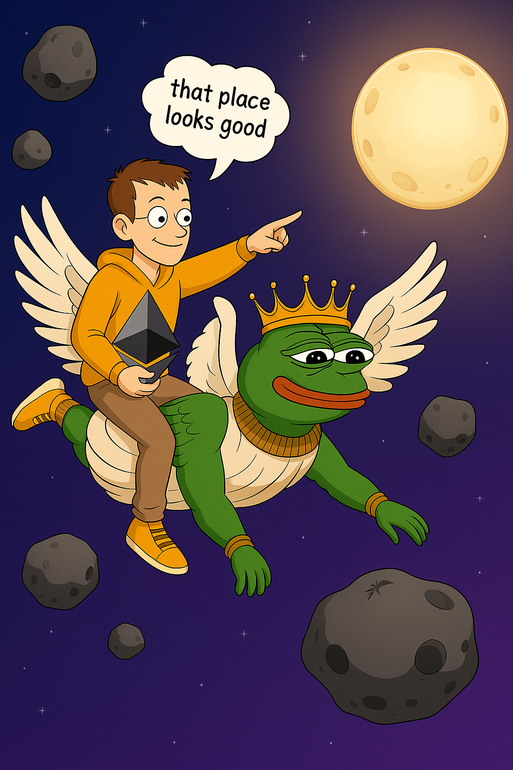 King Pepe nodded. “POM—Power of Memes! The one coin to unite them all!”